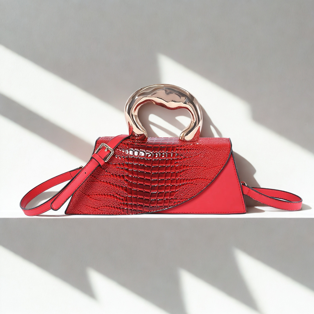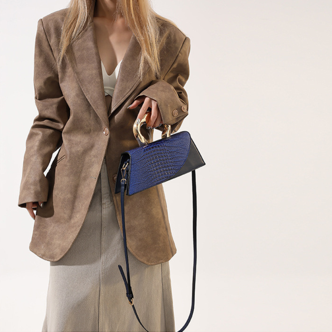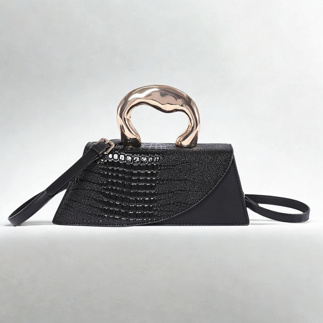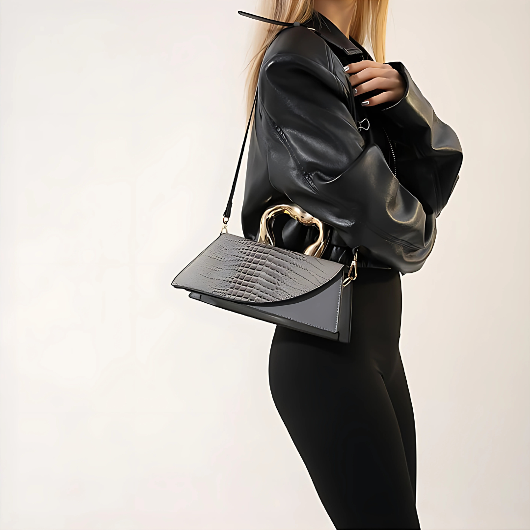 Step into elegance with this 2025 high-end design Crovina handbag, featuring a sleek crocodile pattern and a sculptural metallic handle. Its unique silhouette blends modern artistry with timeless luxury, making it the easiest match for both casual and formal looks. Crafted from premium PU, this versatile bag can be styled as a handbag, shoulder bag, or crossbody. Available in various colors to suit every mood and occasion.