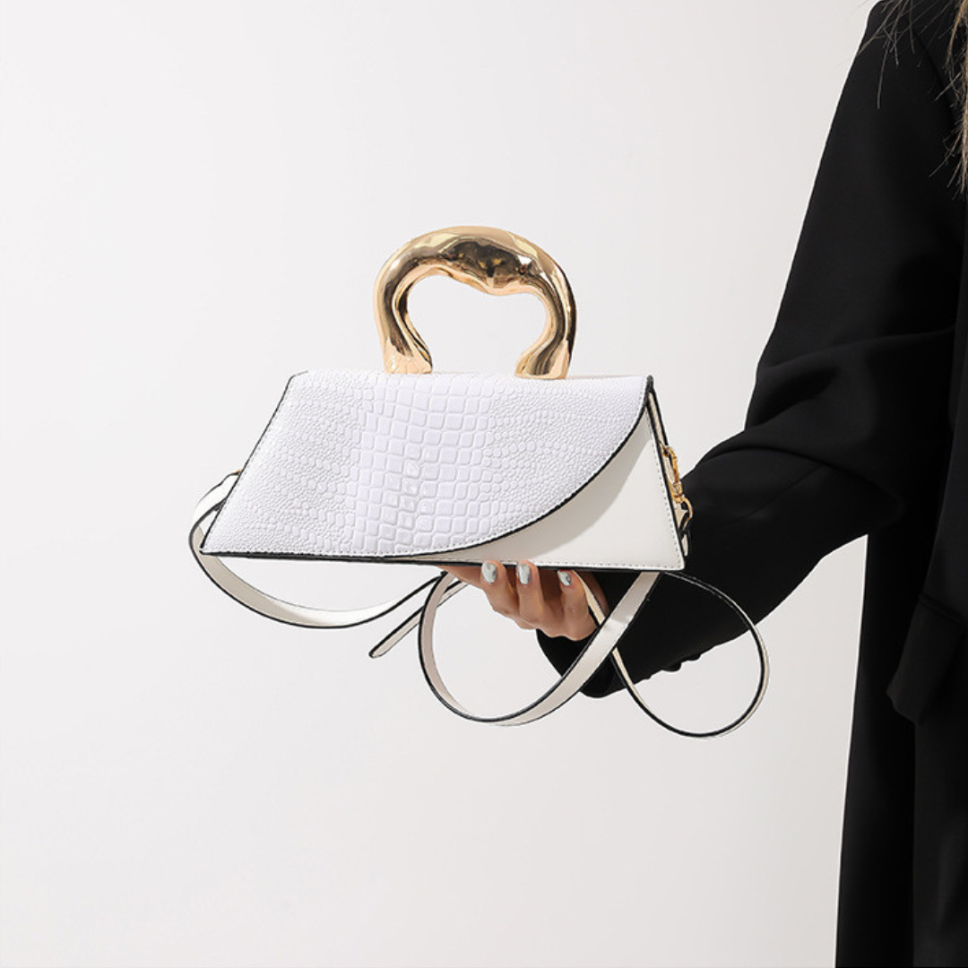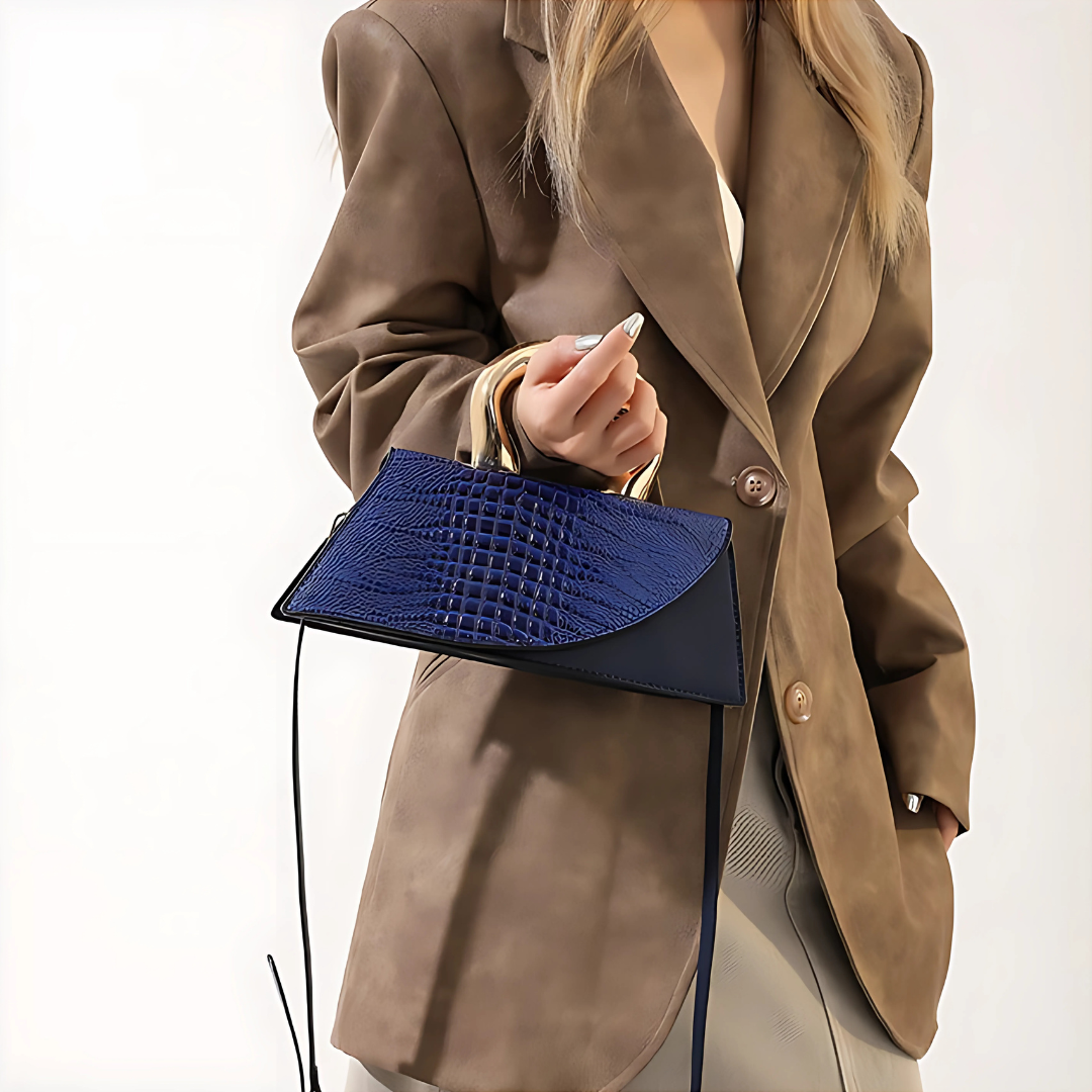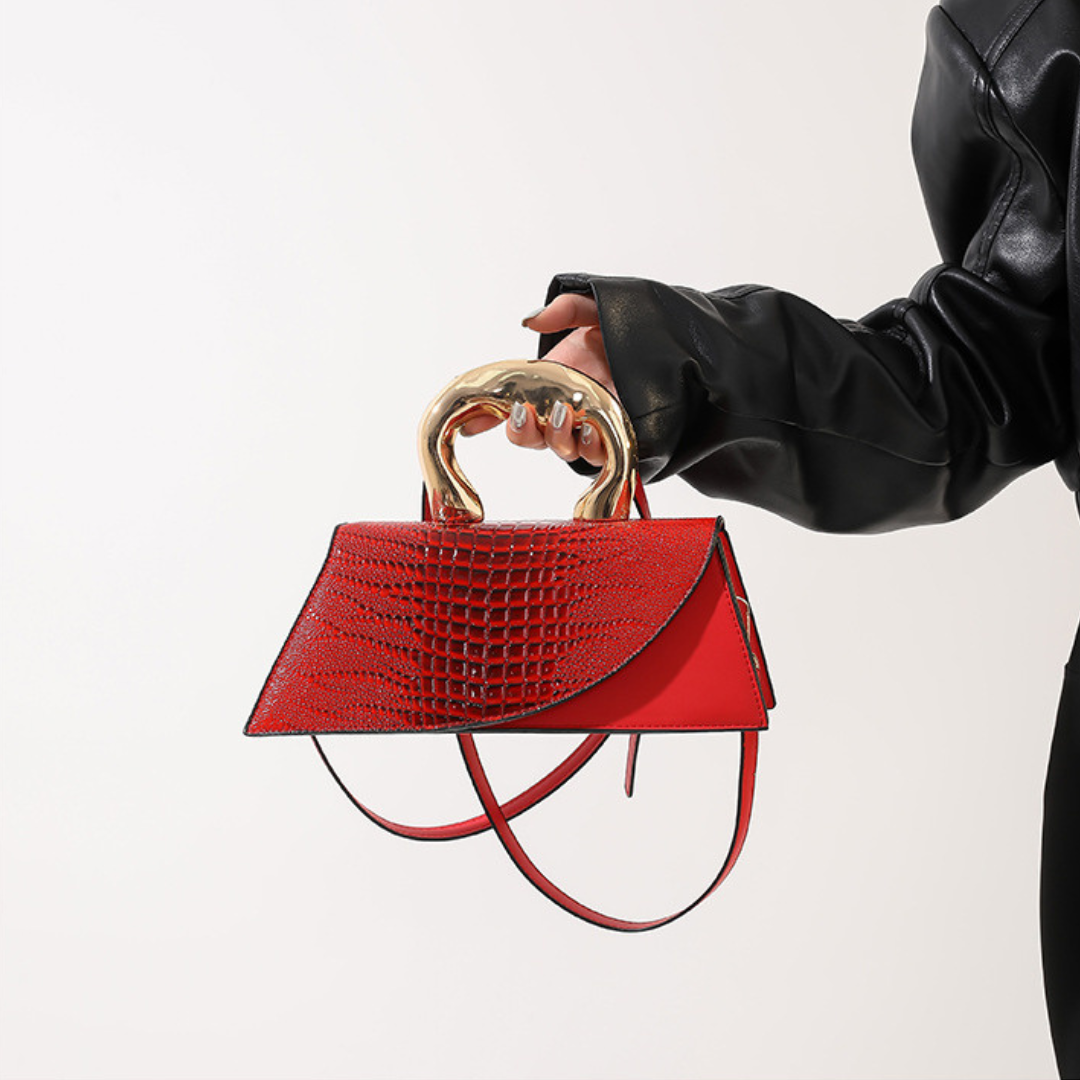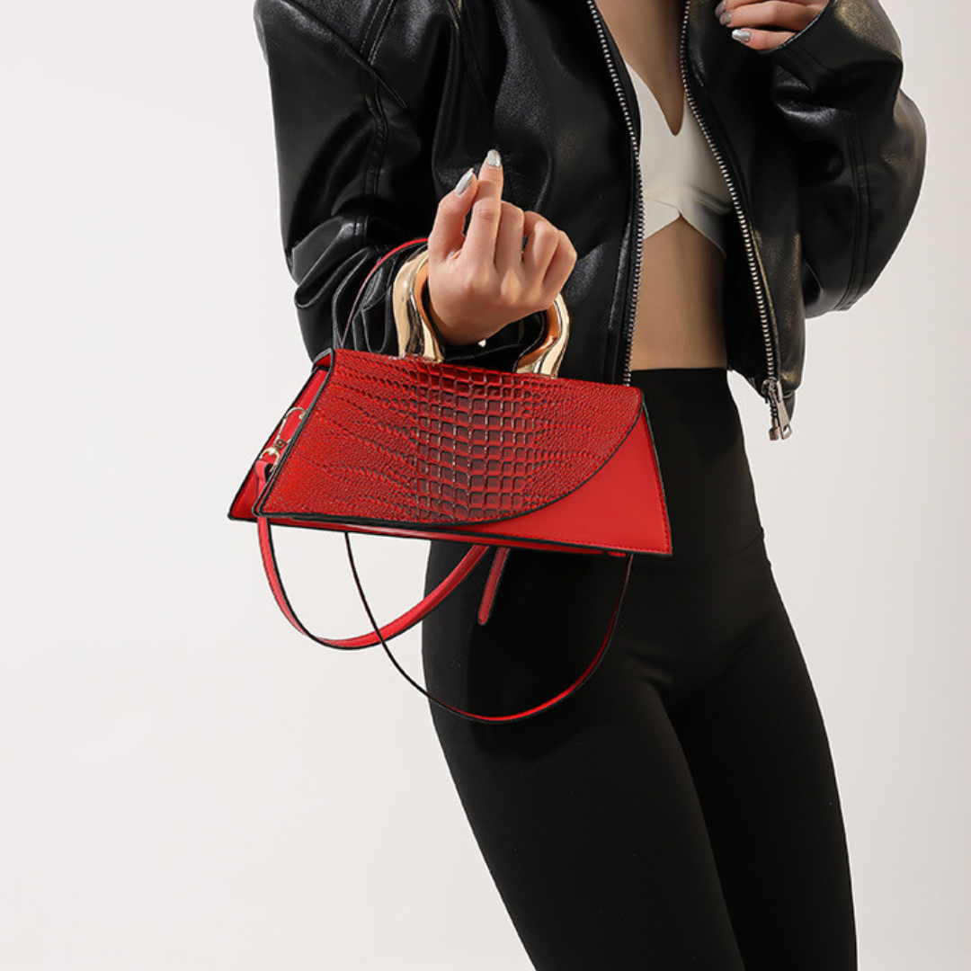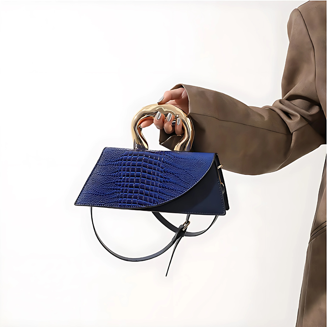 Step into elegance with this 2025 high-end design Crovina handbag, featuring a sleek crocodile pattern and a sculptural metallic handle. Its unique silhouette blends modern artistry with timeless luxury, making it the easiest match for both casual and formal looks. Crafted from premium PU, this versatile bag can be styled as a handbag, shoulder bag, or crossbody. Available in various colors to suit every mood and occasion.
