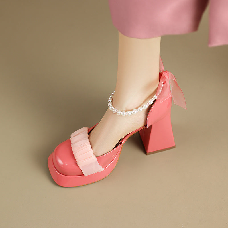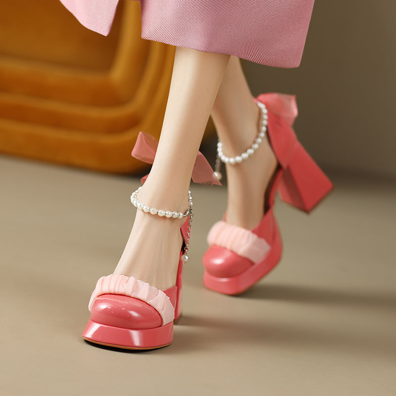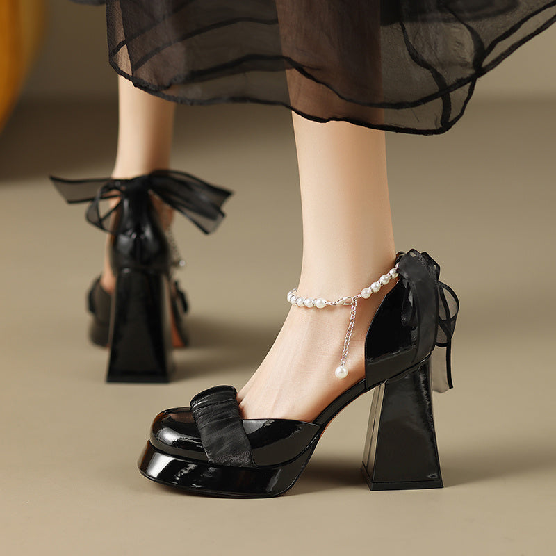 Baotou Thick Bottom Chunky Heel Mary Jane Shoes Women's Real Leather