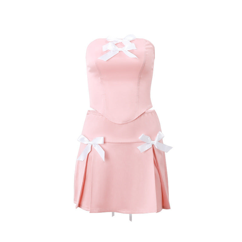 Bow Detail Tube Top Vest and Skirt Set – Sophisticated Look