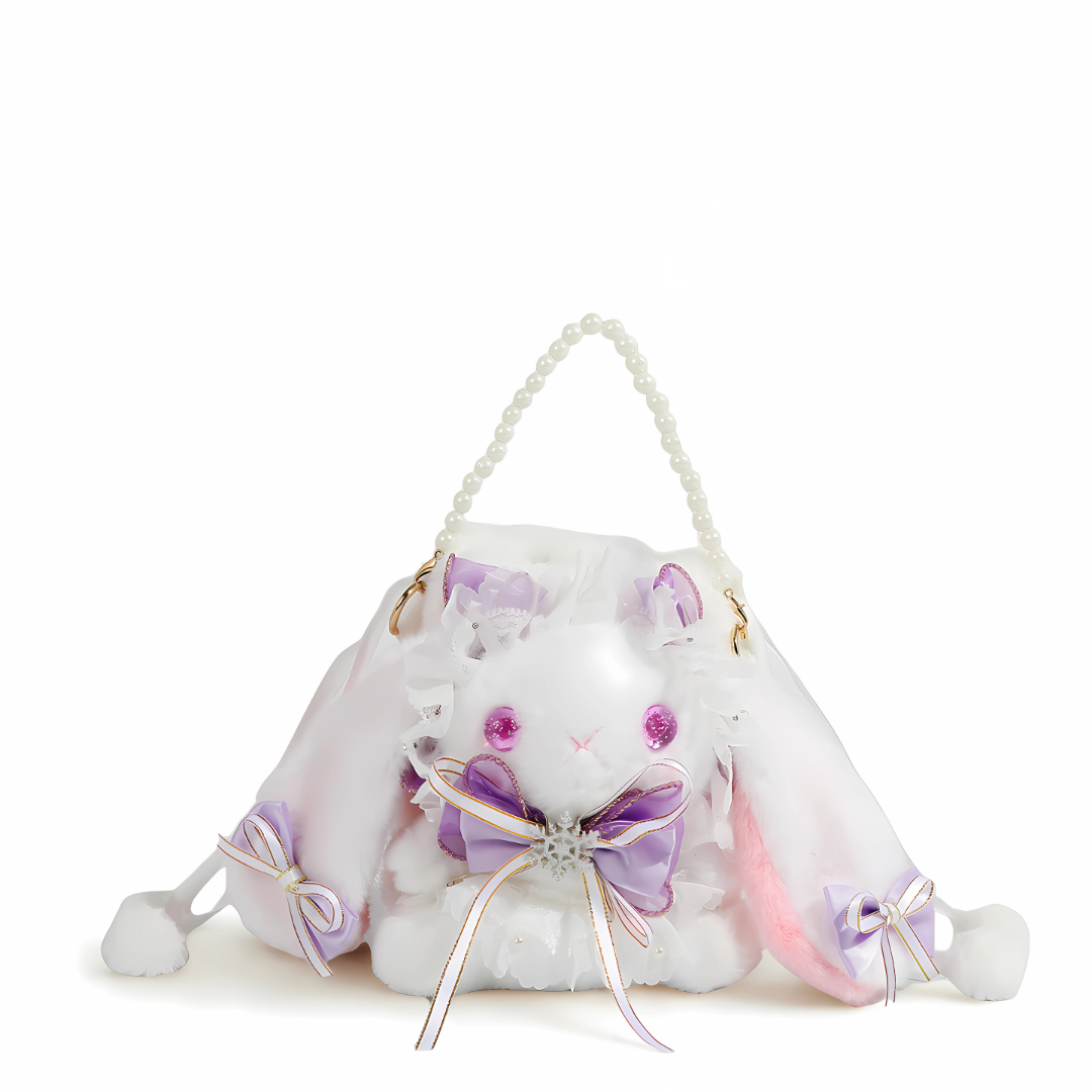 Step into a fairytale with the PearlBun Bag 🐇💖. This adorable plush crossbody features a soft bunny doll with sparkling blue eyes, delicate ruffles, and pastel bows for the ultimate kawaii look. The pearl handle adds a touch of elegance, making it the perfect mix of sweet Lolita charm and playful cuteness.