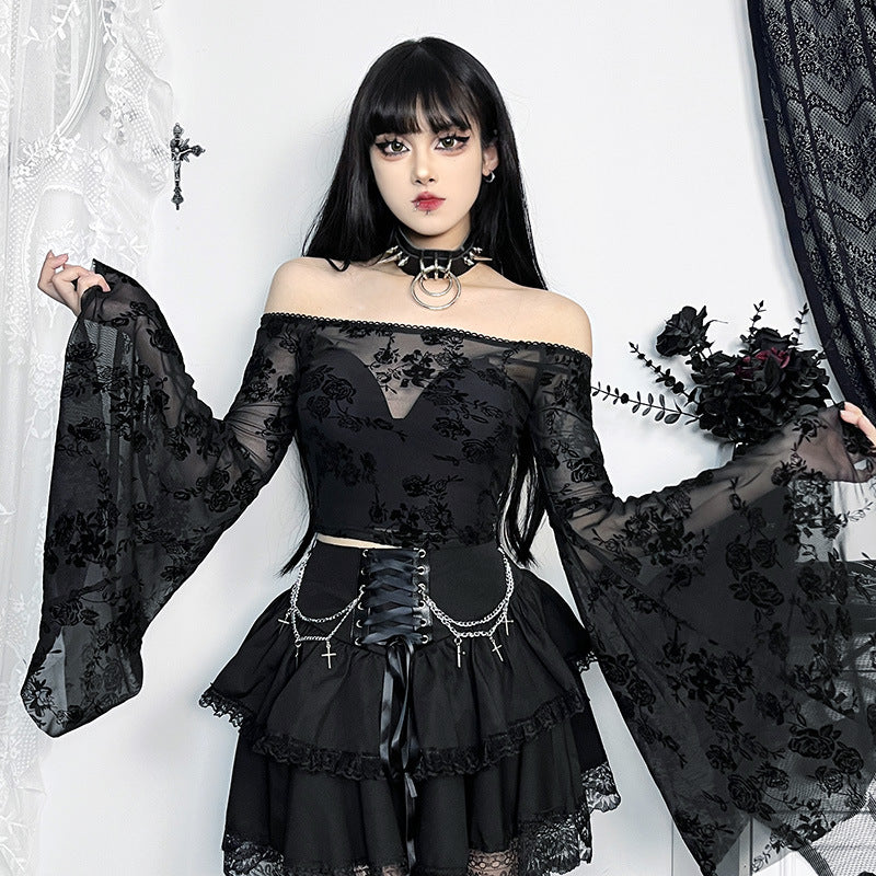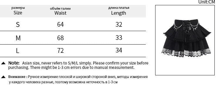 Halloween Party Style Slim Chain Cross Double Layer Gothic Skirt Women