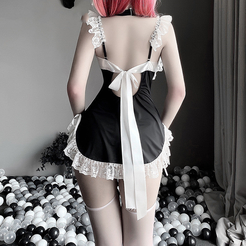 Lace Tie Back Tie Hollow Maid Uniform Suit