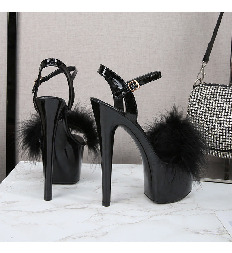 Patent Leather Stilettos Platform Sandals Fur High Heels