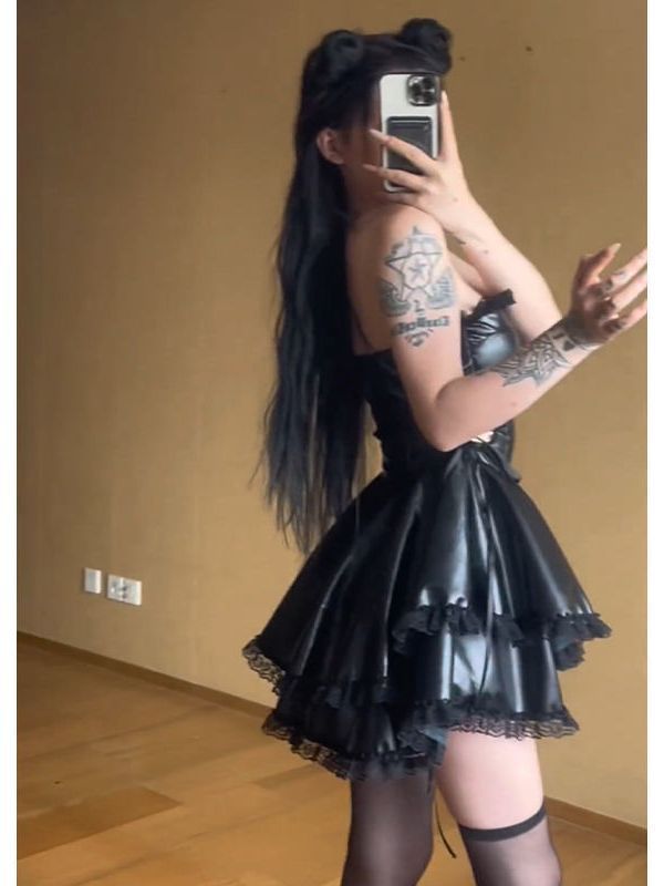 Stylish Two-Piece Dress Set – Strapless Top with Lace Patchwork