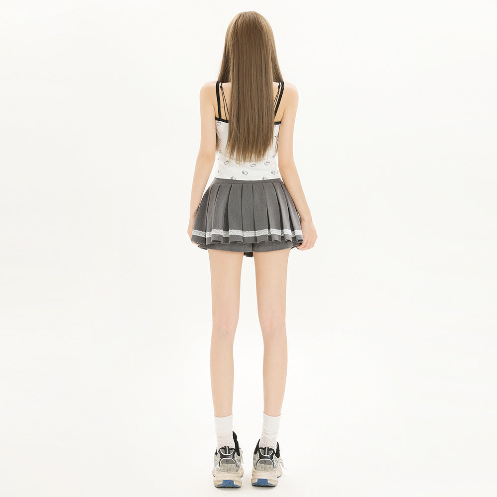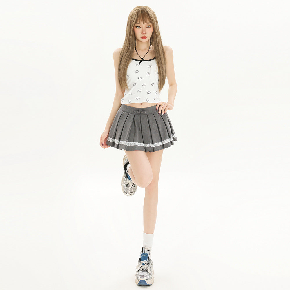 Sweet All-matching Bow Lace Stitching Half-length Pleated Skirt