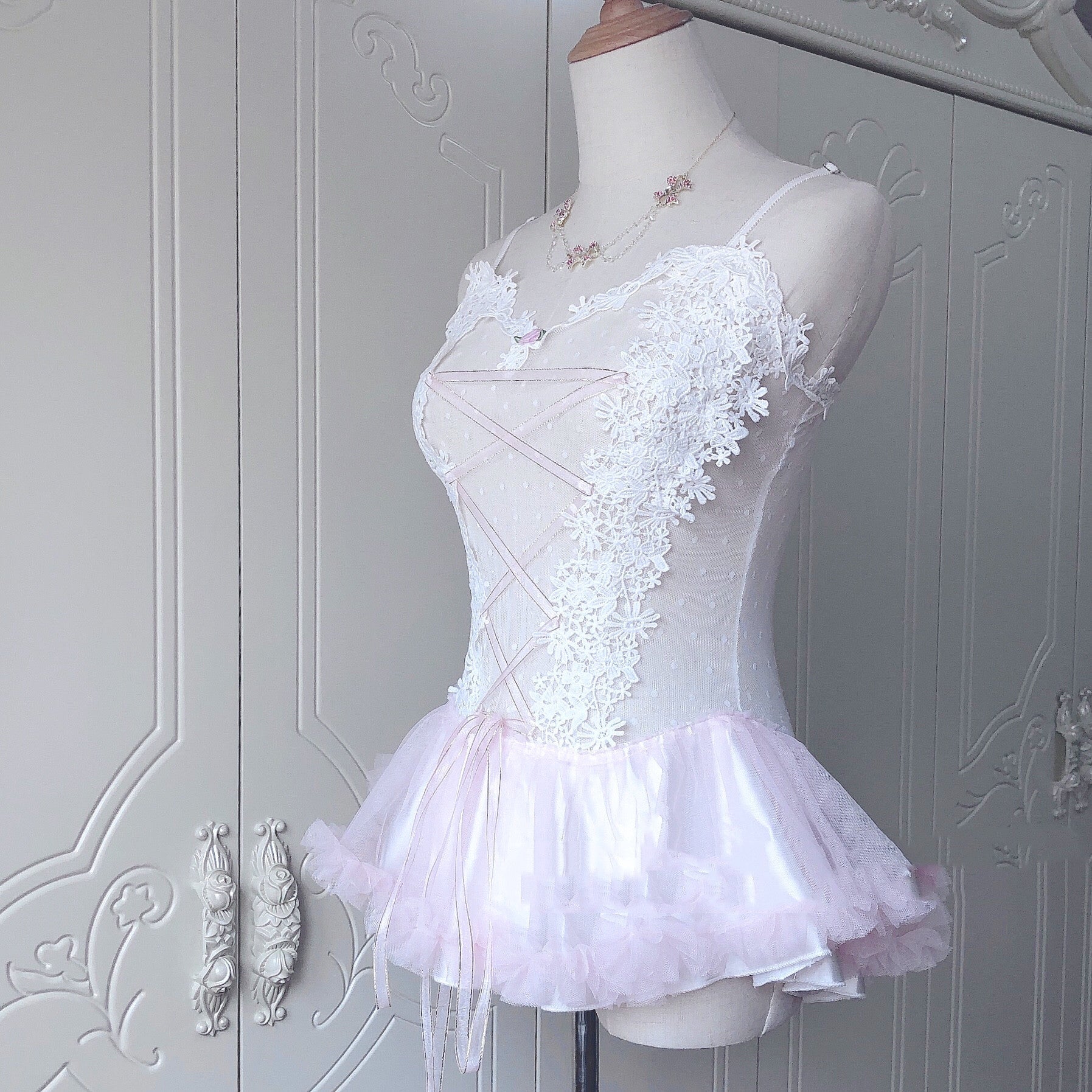 Sweet Lace Mesh Perspective One-piece Suit Hand-made Small Suspender Skirt
