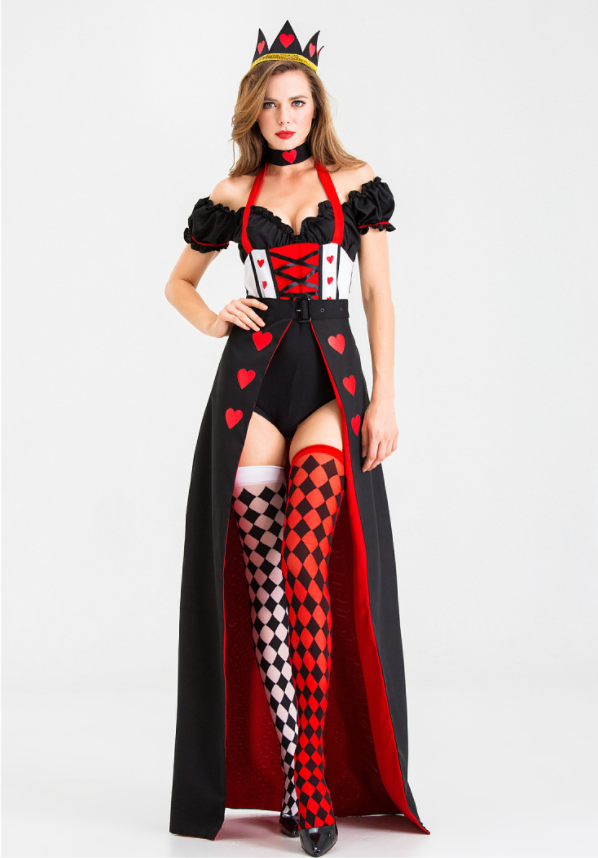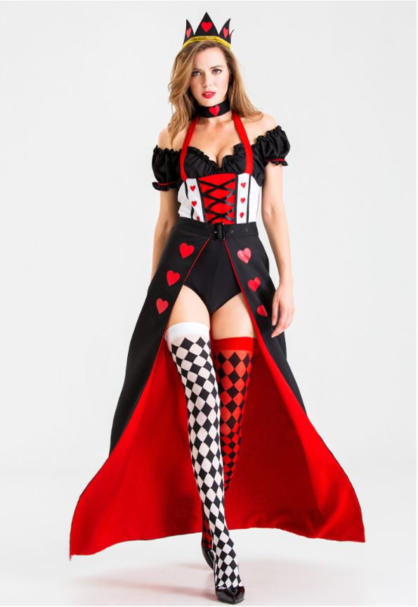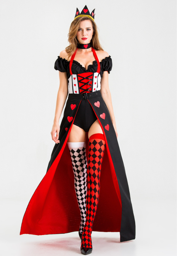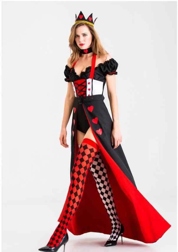 Wholesale European and American Halloween cosplay Hearts Princess Queen Alice in Wonderland Red Queen Dress