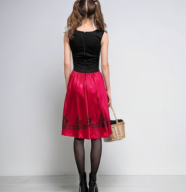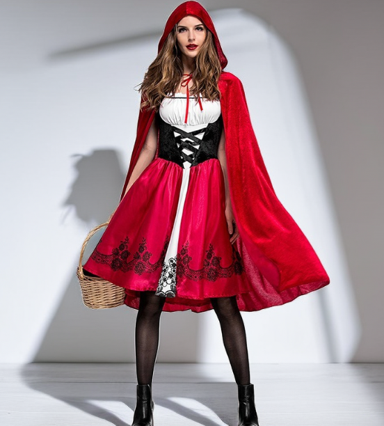 Women's Day of the Dead Cosplay Little Red Riding Hood Dress with Cloak Cape, Costume