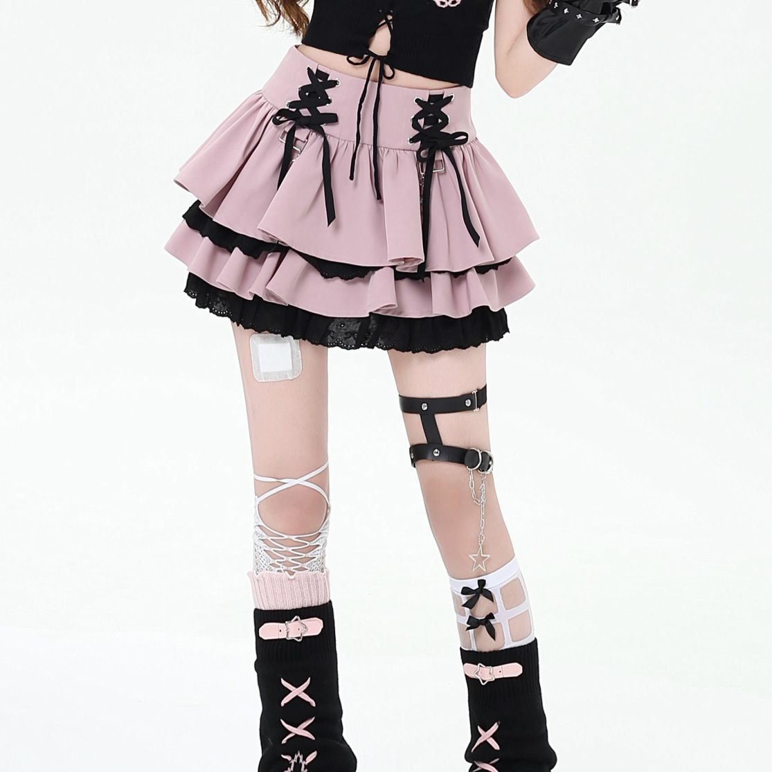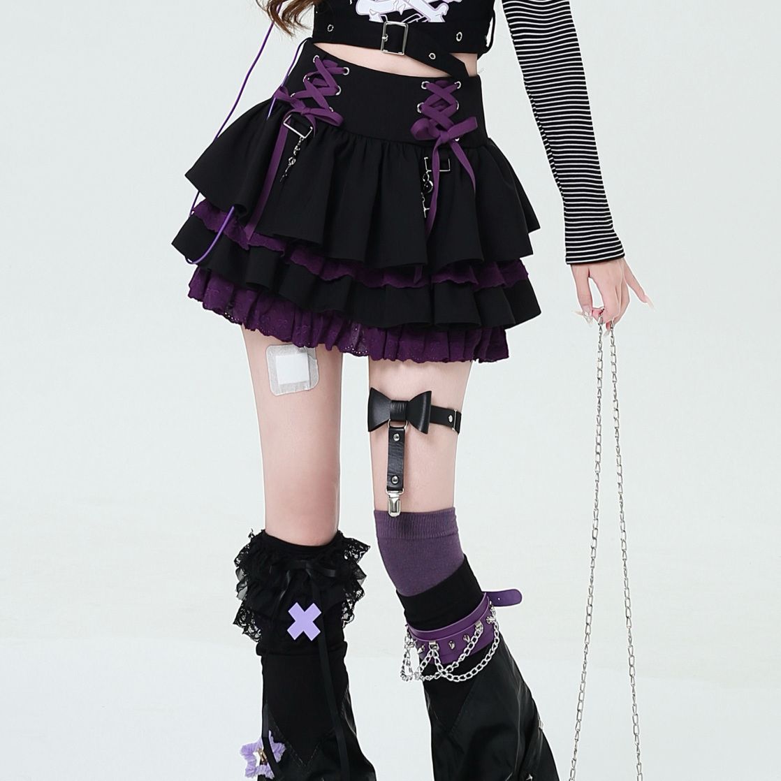 Y2K Sweet Cool Girl Strappy Lace Tutu Skirt Mrxie Rebellious Period Original Cake Skirt New Fashion Hot Sale